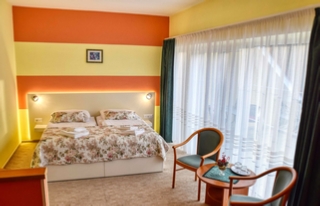 Hangulatos, klimatizált szoba, zuhanykabinos fürdőszobával. A szobák többségéhez erkély is tartozik. A szobák igény esetén különágyas vagy francia ágyas elhelyezéssel is igénybe vehetőek.